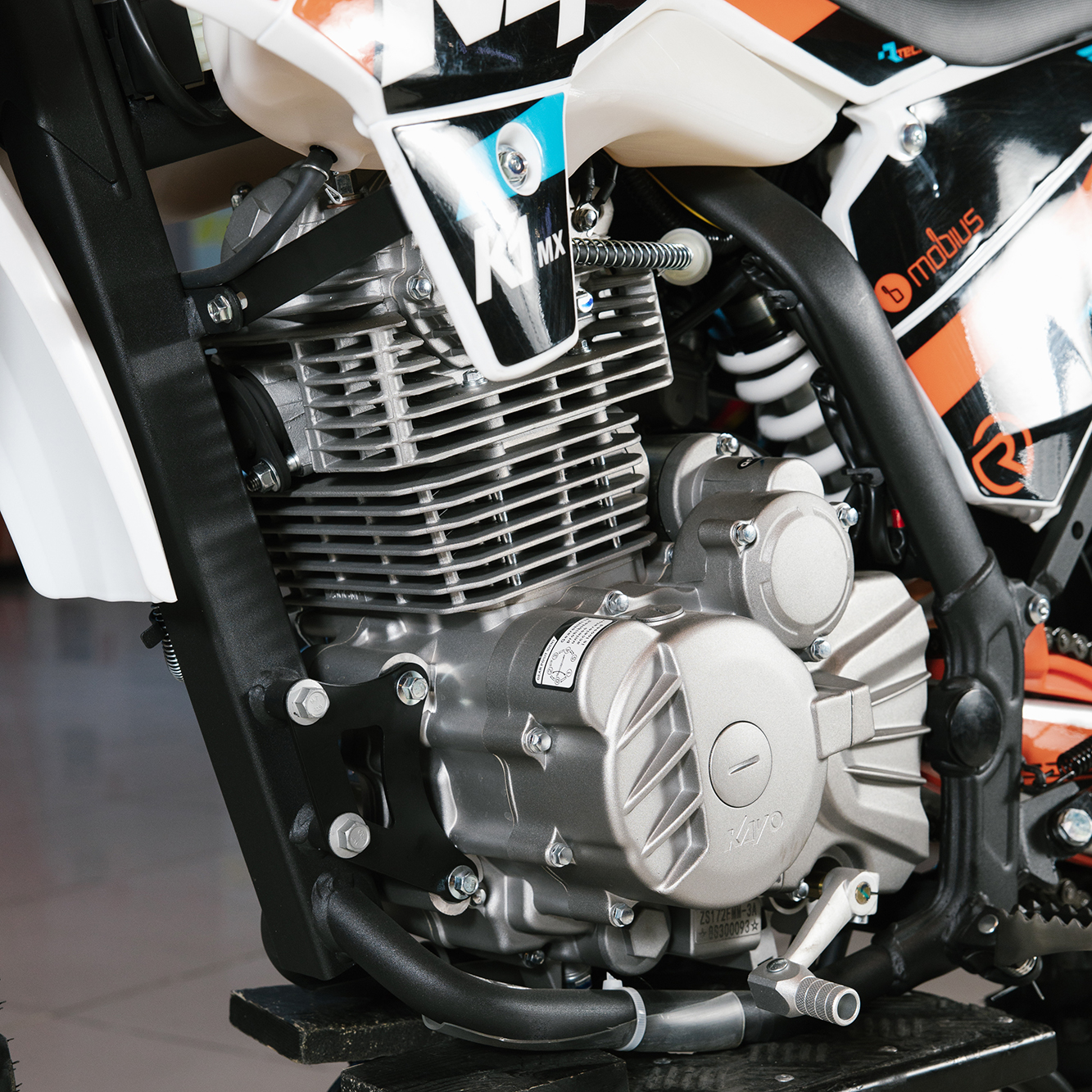 Мотоцикл оснащён одноцилиндровым 4-тактным двигателем воздушного охлаждения (ZONGSHEN ZS172FMM) объёмом 249 см3, который обеспечивает высокую мощность (21 л.с.) и крутящий момент, что позволяет развивать большую скорость и с лёгкостью преодолевать трассы со сложным рельефом. Карбюраторная система подачи топлива с карбюратором NIBBI PE30 обеспечивает бесперебойную работу техники в самых жёстких условиях эксплуатации, простоту и лёгкость в обслуживании, а также неприхотливость к качеству топлива. Аппарат оснащён 5-ступенчатой механической коробкой передач с классической схемой “1-N-2-3-4-5”.