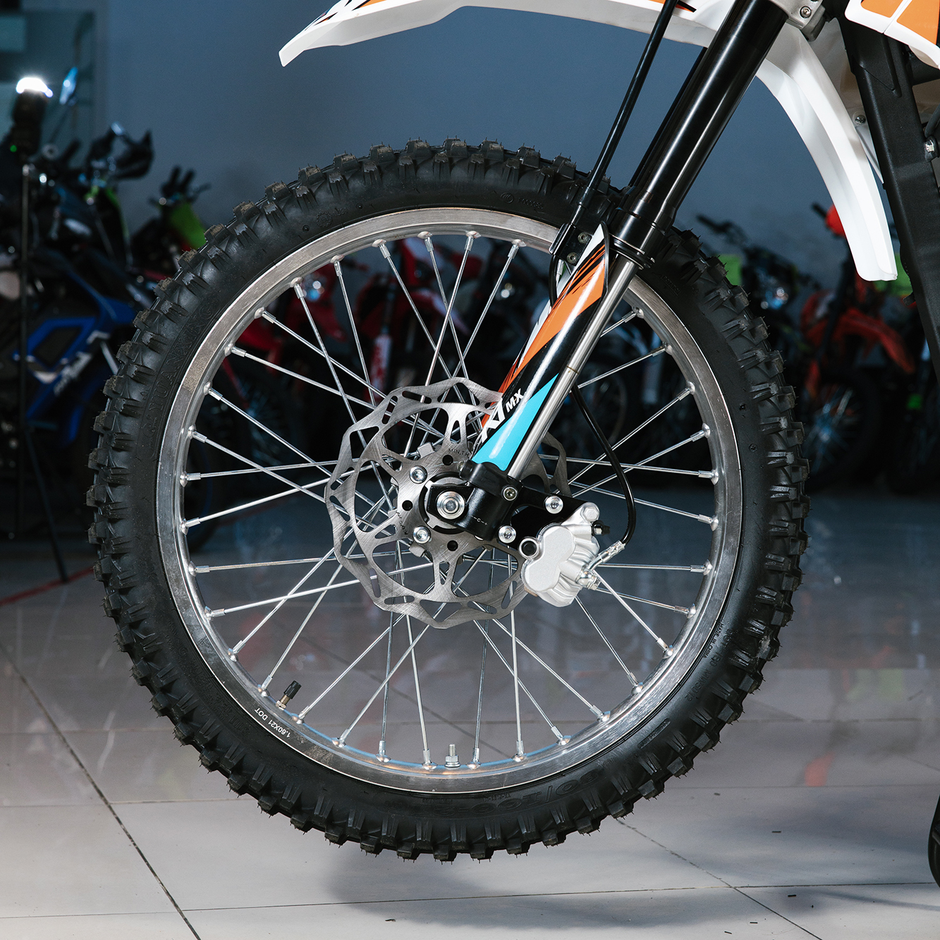 Усиленная рама из хром-молибденового сплава и подвеска позволяют эффективно амортизировать удары при езде по неровностям и препятствиям на трассе. Передняя подвеска телескопическая вилка перевёрнутого типа от фирмы KKE длиной 800 мм, задняя — нерегулируемый моноамортизатор 360 мм, рассчитанный на высокие нагрузки до 900 LBS, также произведённый компанией KKE. Мотоцикл оснащён классическими спицованными колёсами диаметром 18 и 21 дюйм. Колёса имеют усиленные обода из алюминиевого сплава и буксаторы. Эффективное и безопасное замедление с любых скоростей обеспечивают гидравлические дисковые тормоза.